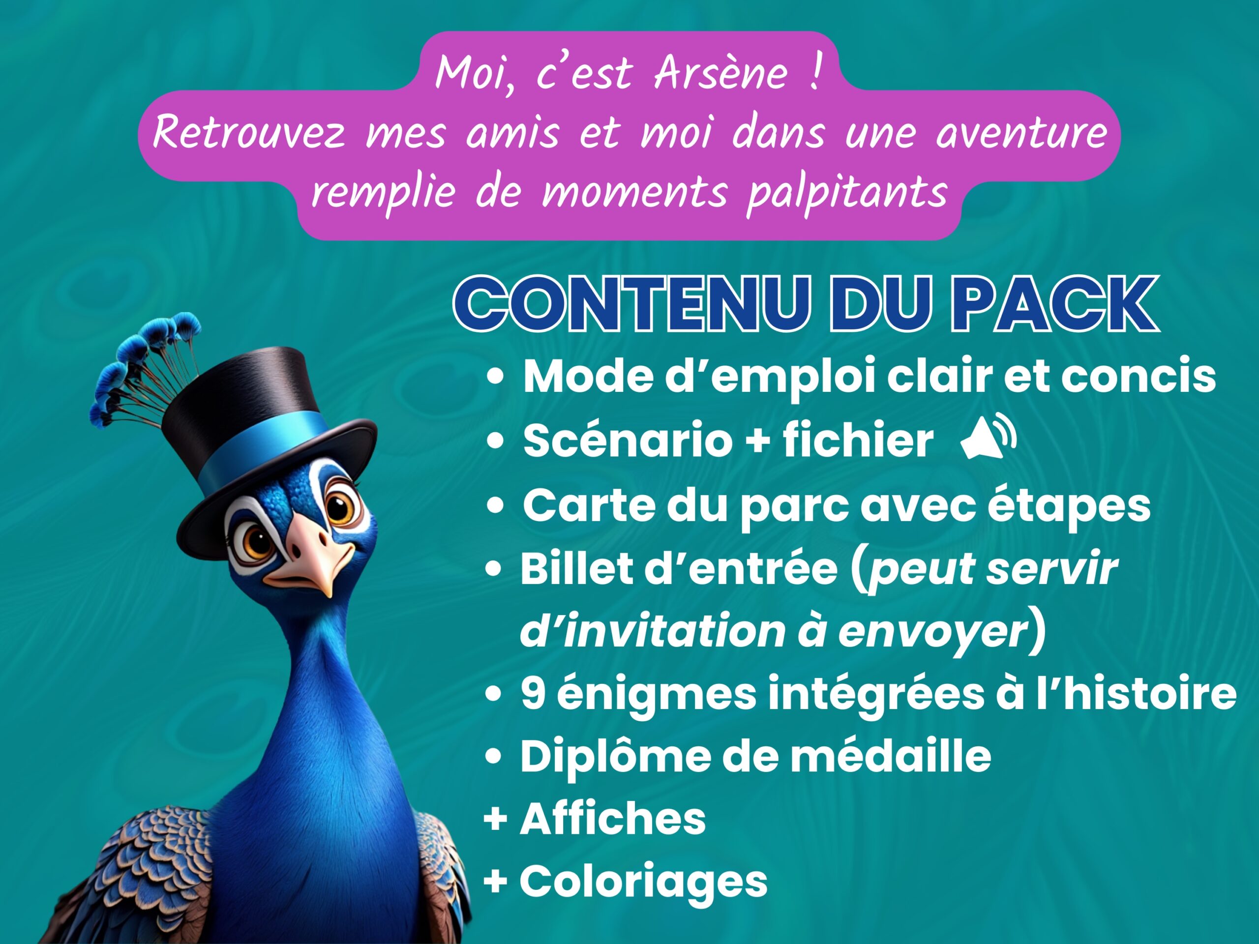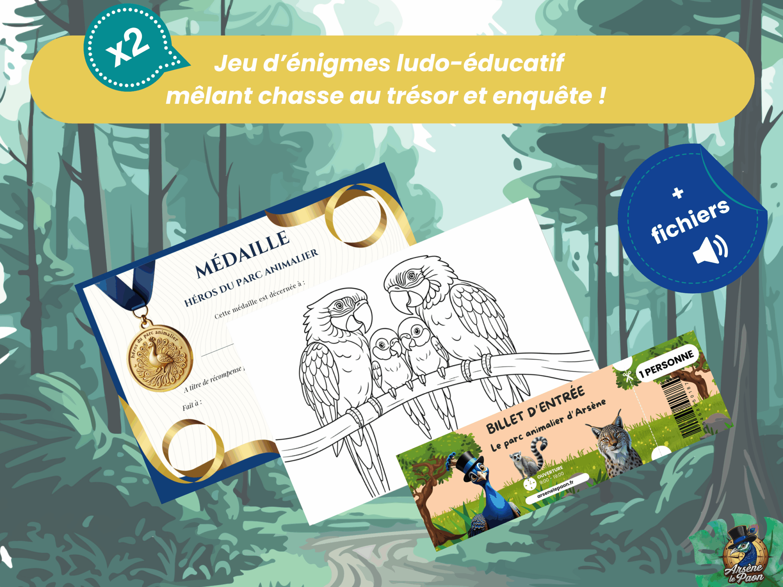 🔎Arsène leur expliquera qu’ils devront rendre visite aux animaux du parc, résoudre des énigmes et suivre des indices pour retrouver deux petits perroquets qui ont disparu.